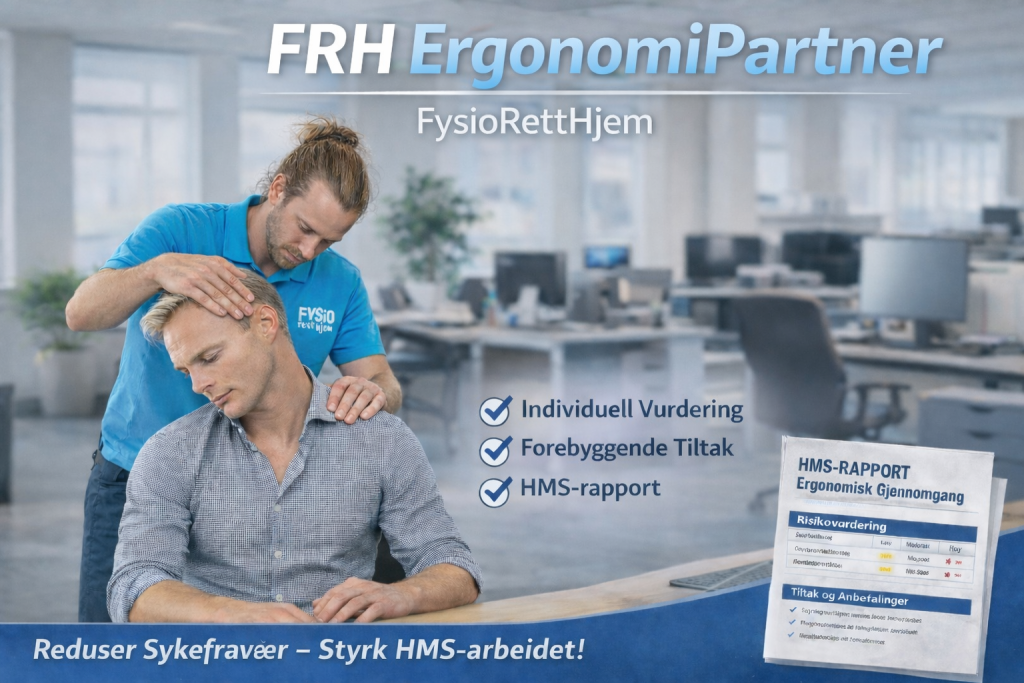 Vi leverer profesjonelle fysioterapi- og massasjetjenester direkte til arbeidsplassen. Våre tilbud er utviklet for å forbedre ansattes helse, redusere belastningsplager og bidra til lavere sykefravær og økt produktivitet i virksomheten.